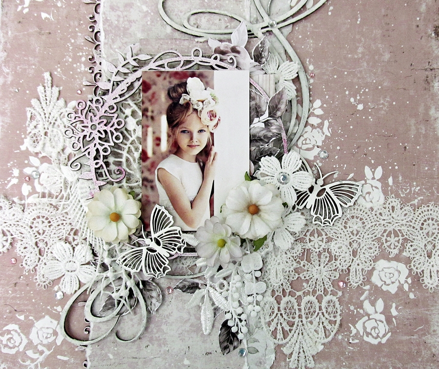 i am so excited to share my first layout for "Maja design creative team".I made a very soft and girly layout in pink and white combo.I have used Vintage spring basics and summer basics papers,you can find more details on Maja blog.